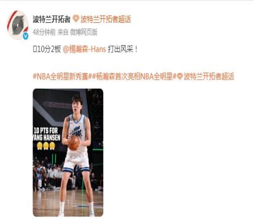 北京時(shí)間2月14日,楊瀚森的首次NBA全明星周末之旅,他8分鐘5中4得到10分2籃板,雖然無緣晉級(jí)全明星新秀賽決賽,但表現(xiàn)已經(jīng)足夠出色,開拓者官方也是稱贊“打出風(fēng)采”。楊瀚森賽后回應(yīng)最喜歡自己的那記外線三分,自嘲自己的中式英語讓大家很開心,還表示最喜歡的全明星部分是與偶像約基奇聊天,甚至是等不及要親約基奇。