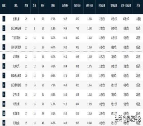 CBA最新排名:上海穩(wěn)居第一深圳戰(zhàn)績狂飆季后賽格局漸漸清晰