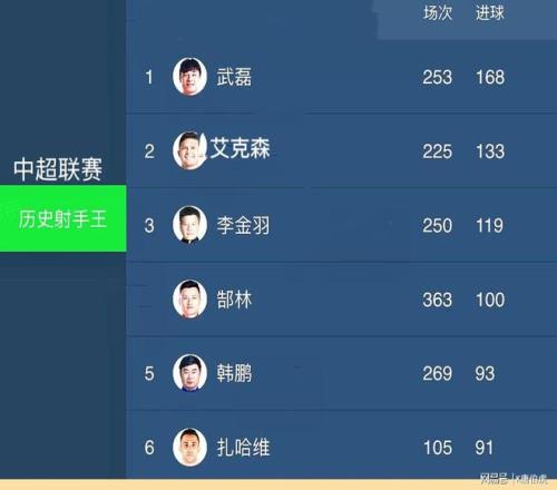 歷史最佳射手榜單第一名也是武磊的168球,比第二名的艾克森要足足多了35個進球,然而其對比第6名的外援扎哈維105場91球的0.86超強效率而言就有些相形見拙了。