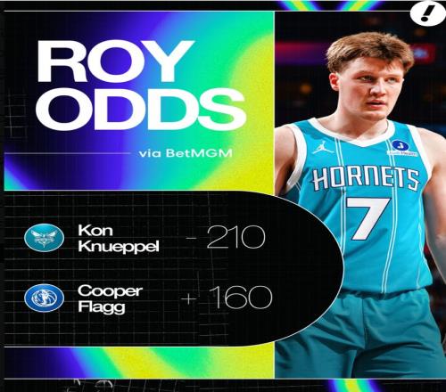 最新一期的官方最佳新秀榜克努佩爾還是蟬聯(lián)第一,他的ROY賠率-210也斷崖領(lǐng)跑,弗拉格排第二+160,這個(gè)差距是非常之大的。