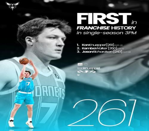 此役克努佩爾再度命中4個(gè)三分球,他的單賽季三分命中數(shù)已經(jīng)來(lái)到261個(gè),他超越了18-19賽季的肯巴-沃克260個(gè)的隊(duì)史紀(jì)錄,1.他成為隊(duì)史單賽季三分命中榜第一人。