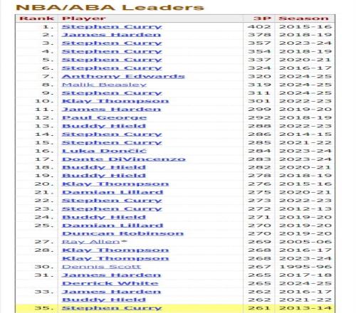 2.本賽季261個(gè)三分球是聯(lián)盟最多,東契奇253個(gè)第二;