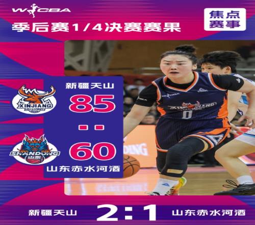 WCBA季后賽1/4決賽第三輪,新疆女籃85-60擊敗山東女籃晉級四強(qiáng),這場比賽的第二節(jié)新疆隊(duì)凈勝10分后開始掌控局勢,第三節(jié)新疆隊(duì)一波25-11直接打崩山東隊(duì),最終新疆隊(duì)以大比分2-1挺進(jìn)四強(qiáng)。