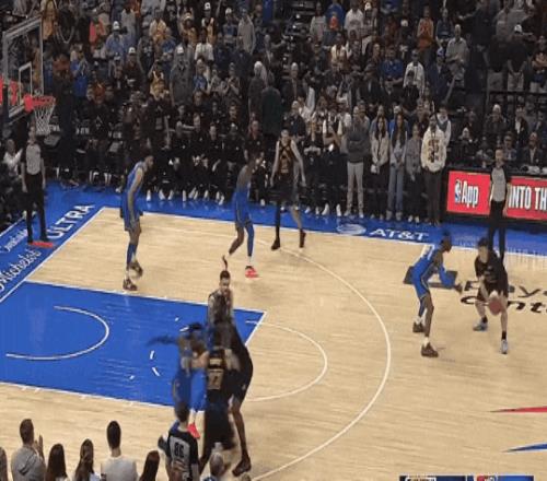 亞歷山大下一回合立刻追肯納德一個高打板得分,之后點名盧卡,趁海耶斯收縮弱側,喂杰林遠射。