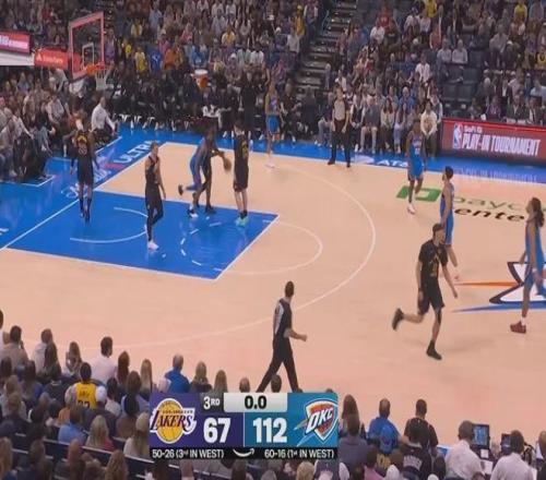 沒有了東契奇,湖人顯然更加難以招架強(qiáng)悍的雷霆,第三節(jié)打完67-112大比分落后。