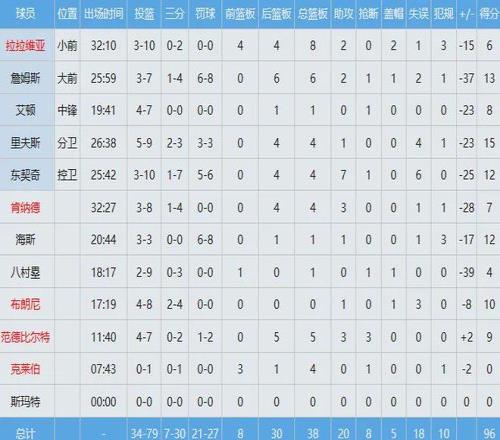 總投籃數(shù)據(jù)79中34,命中率只有約43%。