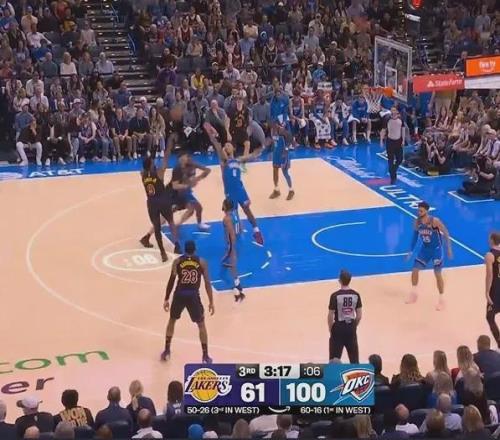次節(jié)雷霆又打了湖人38-30,上半場打完取得82-51巨大領(lǐng)先優(yōu)勢,硬生生成了一邊倒的表演秀。