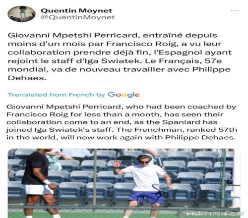 據(jù)法國(guó)《隊(duì)報(bào)》爆料,斯瓦泰克的新教練人選已經(jīng)確定,納達(dá)爾的功勛教練羅伊格已經(jīng)結(jié)束同佩里卡爾的短期合作,將正式加盟波蘭姑娘團(tuán)隊(duì),從側(cè)面印證了此前納達(dá)爾向斯瓦泰克推薦羅伊格當(dāng)教練這件事屬實(shí)。