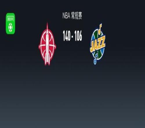 第四節(jié)火箭杰肖恩-泰特拿下7分,爵士埃斯-貝利拿下13分,最終火箭140-106戰(zhàn)勝爵士