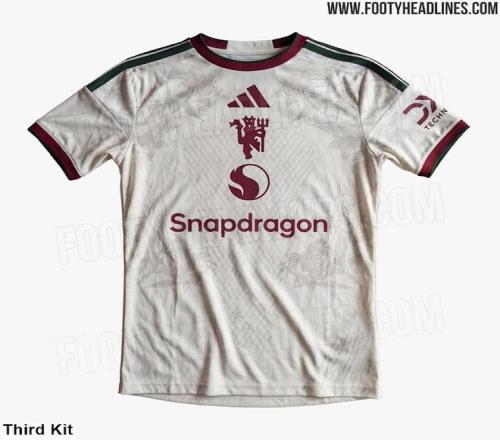 阿迪達斯為曼聯(lián)設(shè)計的26-27賽季第三球衣以米白色為主色調(diào),搭配深綠色和酒紅色,雖然配色與23-24賽季客場球衣非常相似,但設(shè)計風(fēng)格卻截然不同。