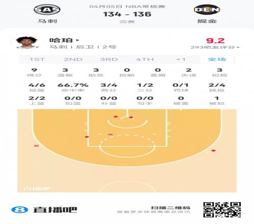 馬刺榜眼秀哈珀 登場(chǎng)20.2分鐘