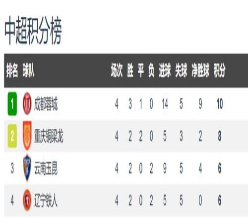 中超聯(lián)賽第4輪已經(jīng)全部結(jié)束,成都蓉城5-1大勝青島西海岸,費(fèi)利佩上演帽子戲法;青島海牛主場(chǎng)1球小勝河南,迎來賽季首勝;遼寧鐵人2-1拿下北京國安,2連勝坐穩(wěn)了聯(lián)賽第4的位置;山東泰山1-2輸給了大連英博,最近2場(chǎng)比賽全部輸給了對(duì)手;海港2-1力克云南玉昆,積分轉(zhuǎn)正來到了1分;浙江0-1輸給了銅梁龍,迎來賽季首??;深圳新鵬城5-2大勝武漢三鎮(zhèn),主場(chǎng)2連勝;天津2-3不敵上海申花,至今難求一勝。