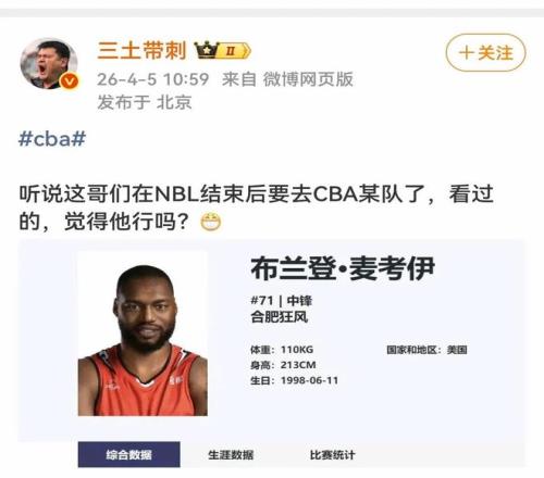 麥考伊身高2.13米,體重110公斤,本賽季效力合肥狂風(fēng),常規(guī)賽場均得到17.4分11.1籃板1.7蓋帽,是球隊的內(nèi)線支柱。麥考伊是典型的藍(lán)領(lǐng)大外,能護(hù)框能搶板,吃餅?zāi)芰σ埠軓?qiáng),與后衛(wèi)打擋拆配合的意愿也高,可以說是市面上最適合廣東的大外援了。加上麥考伊現(xiàn)在打的是NBL聯(lián)賽,身價肯定不高,適合已經(jīng)花完外援預(yù)算的廣東。非常期待麥考爾加盟宏遠(yuǎn)后,與徐杰打一五擋拆,重現(xiàn)上賽季徐杰和莫蘭德的完美配合!