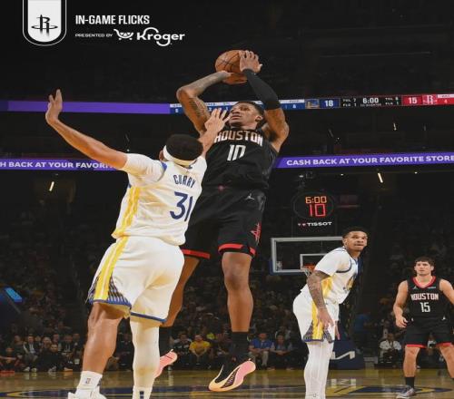 第一節(jié)后半段,庫里替補(bǔ)登場,先是助攻貝西完成暴扣,緊接著庫里自己超遠(yuǎn)三分命中。首節(jié)戰(zhàn)罷,勇士31-26領(lǐng)先火箭5分。勇士替補(bǔ)合砍13分,火箭替補(bǔ)僅得2分。第二節(jié)開始,申京和小賈率火箭打出一波14-2,一舉反超勇士7分。