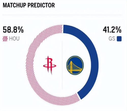 賽前,美媒ESPN對(duì)本場(chǎng)比賽進(jìn)行了勝率預(yù)測(cè),火箭隊(duì)勝率58.8% ,而勇士勝率則為41.2% ,劣勢(shì)明顯 。