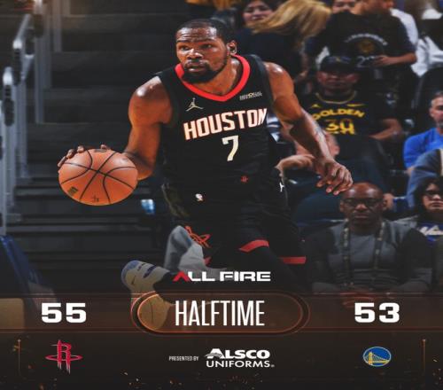 史密斯、申京和霍勒迪各中三分,他們率隊(duì)以11-0的反擊波開(kāi)始第二節(jié),火箭隊(duì)以37-31反超。勇士隊(duì)暫停后桑托斯兩罰暫時(shí)止血,史密斯又中三分,塞斯-庫(kù)里三罰全中帶動(dòng)球隊(duì)又是一波9-0的小高潮,勇士隊(duì)以42-40重新領(lǐng)跑。杜蘭特兩罰追平,庫(kù)里回到場(chǎng)上連得5分重新拉開(kāi),杜蘭特不甘示弱連進(jìn)兩球,史密斯三分中的,一輪9-0的反擊波讓火箭隊(duì)以51-47重新領(lǐng)跑。波爾津吉斯、申京輪流得分,波杰姆斯基扣籃得手,半場(chǎng)結(jié)束時(shí)勇士隊(duì)以53-55落后2分。
