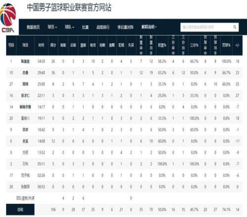 北京男籃贏下這場比賽的兩大功臣,無疑是杰曼和陳盈駿,這兩人支撐起了球隊的進攻。杰曼在這場比賽中火力全開,19投12中砍下了36分5助攻2搶斷的數(shù)據(jù);陳盈駿也是大殺四方,12中7得到了26分3個籃板10次助攻。這兩人合力砍下了62分,幾乎占全隊得分的三分之二。周琦這場比賽的得分雖然不高,但防守端的作用還是非常明顯的,正負值達到了全場最高的+25,這足以說明了周琦在場上的作用。