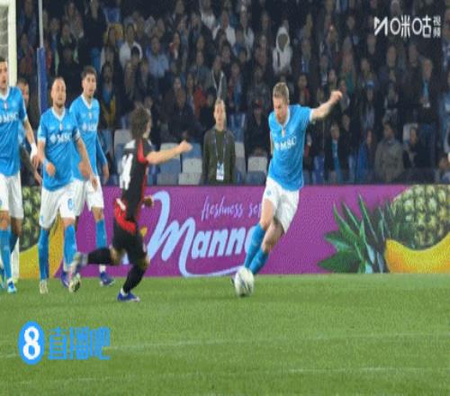 第44分鐘,那不勒斯禁區(qū)左側(cè)挑傳,麥克托米奈搶點(diǎn)倒鉤打門偏出↓
