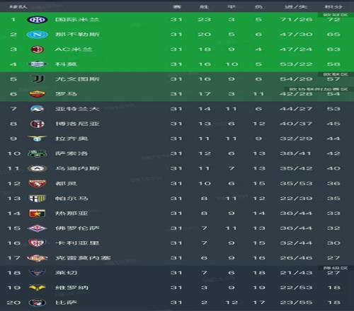 隨著AC米蘭01,尤文20,意甲最新排名出爐!國(guó)米7分領(lǐng)跑