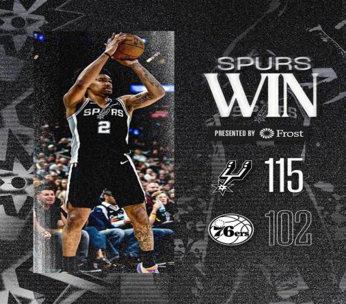 文班亞馬僅打不到16分鐘得到17分5板1助3帽,馬刺照樣在主場(chǎng)115-102把費(fèi)城按在地上亂錘。