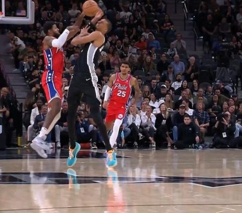 次節(jié)比賽,文班亞馬一度被喬治拉到手臂受傷返回更衣室,雙方纏斗至馬刺38-39,馬刺內(nèi)外開花一波11-2攻勢(shì)反超8分。恩比德率領(lǐng)76人逐步追到僅差2分,文班亞馬三分命中引領(lǐng)8-2攻勢(shì)繼續(xù)拉開比分,76人繼續(xù)有所反撲追分。文班亞馬受傷返回更衣室,馬刺單節(jié)33-27凈勝6分,上半場(chǎng)結(jié)束馬刺62-55領(lǐng)先76人。前兩節(jié)比賽,76人三分16中6,恩比德12中7得到20+6+2帽與喬治13分、馬克西4中0得到0分7助攻;馬刺三分15中5,文班亞馬11中7得到17+5+3帽與卡斯?fàn)?0+6+7。