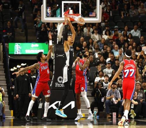 馬刺上一場(chǎng)客場(chǎng)134-136加時(shí)惜敗掘金結(jié)束11連勝,76人上一場(chǎng)主場(chǎng)93-116輸給活塞,本賽季首次交鋒馬刺客場(chǎng)131-91大勝76人。本場(chǎng)76人缺少布魯姆與佩恩,馬刺缺少加西亞。首節(jié)開局馬刺5-9落后,文班亞馬引領(lǐng)馬刺逐步以14-12反超,雙方持續(xù)緊咬比分拉鋸戰(zhàn)纏斗。馬刺在22-26落后情況下,立即連得7分反超比分,恩比德上籃追分,首節(jié)結(jié)束馬刺29-28領(lǐng)先76人。首節(jié)馬刺22中12,其中三分6中2,文班亞馬7中4得到9+3+2帽;76人24中10,其中三分8中4,喬治6中4命中3記三分得到11分、恩比德6中2得到4分2帽與馬克西4中0得到0分5助攻。
