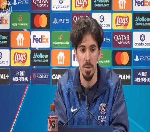北京時間4月9日凌晨3時,巴黎將在歐冠1/4決賽首回合主場對陣利物浦,巴黎中場維蒂尼亞出席了賽前新聞發(fā)布會。