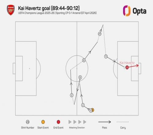 數(shù)據(jù)統(tǒng)計顯示,這是阿森納本賽季歐冠聯(lián)賽中第四粒由替補球員連線取得的進(jìn)球,也是單賽季歐冠聯(lián)賽任一球隊由替補球員連線進(jìn)球之最。