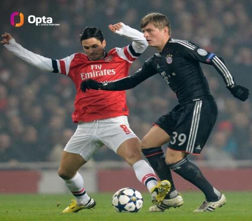 賴斯13次奪回球權(quán),為塔帥以來阿森納中場(chǎng)歐冠淘汰賽單場(chǎng)最多