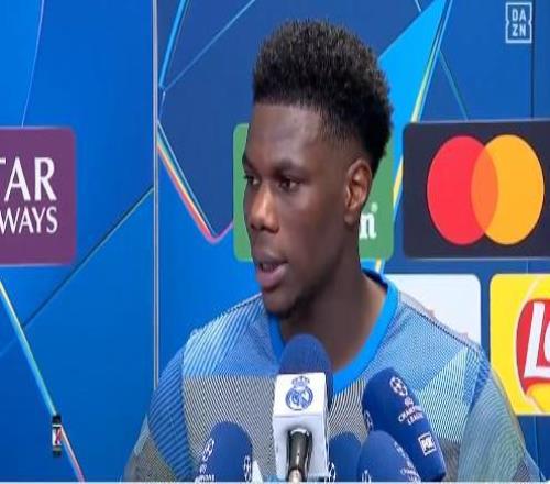歐冠1/4決賽首回合,皇馬主場(chǎng)1-2輸給拜仁,皇馬中場(chǎng)楚阿梅尼賽后在混采區(qū)接受了采訪。