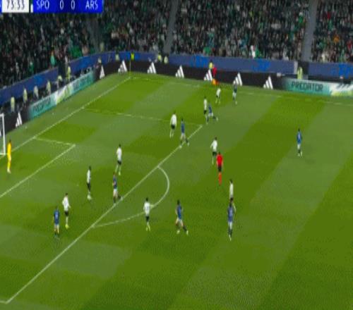 第6分鐘,葡萄牙體育后場(chǎng)送出長(zhǎng)傳,阿勞霍前插拿球突入禁區(qū)內(nèi)單刀爆射,球擊中橫梁彈出,阿森納逃過(guò)一劫。