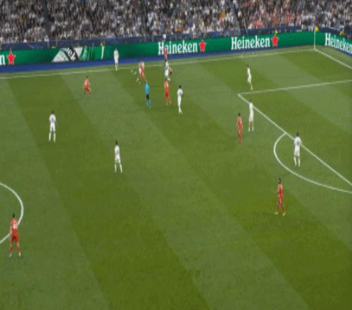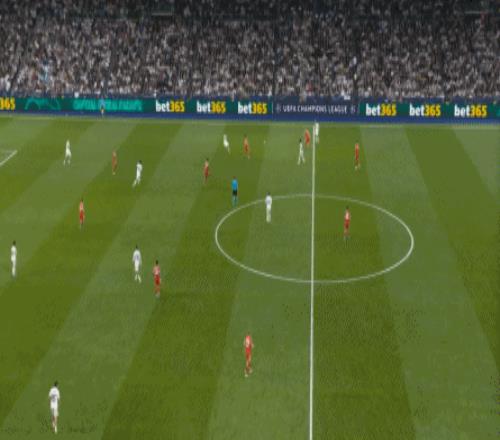 于是在第18分鐘,在經(jīng)歷了對(duì)手的連續(xù)施壓過(guò)后,在赫伊森和居萊爾的幫助下,皇馬打出了他們想要的進(jìn)攻,這是他們本場(chǎng)第一次反擊,也是相對(duì)威脅較大的反擊之一: