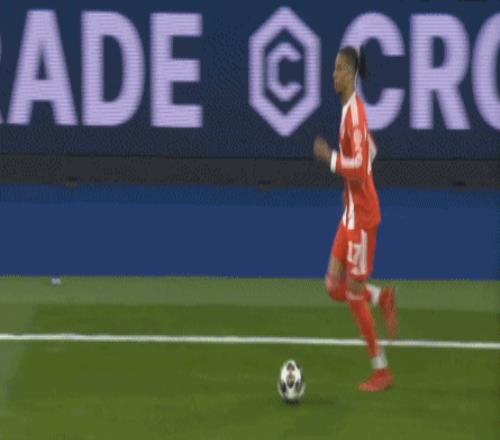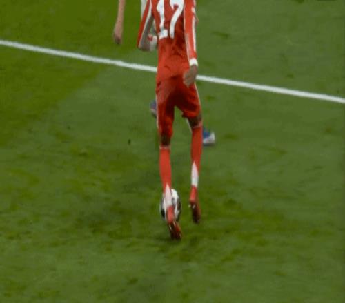 本場(chǎng)比賽,奧利塞觸球82次,是拜仁前場(chǎng)四人中觸球次數(shù)最多的,球隊(duì)的進(jìn)攻方向自然在朝他這一側(cè)大幅度傾斜,但在上半場(chǎng)的開(kāi)局階段結(jié)束之后,他這一側(cè)的成功進(jìn)攻其實(shí)就是兩次由逆足送出的傳中: