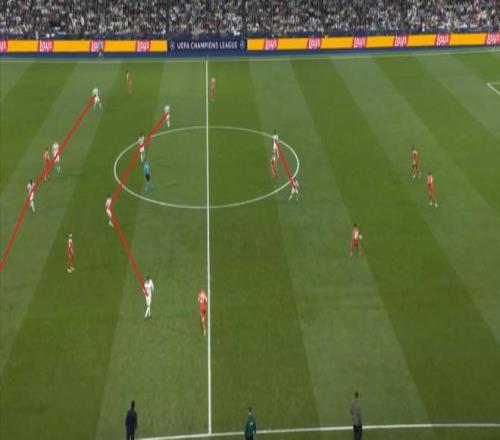 然而,上半場(chǎng)讓人印象更為深刻的,并不是拜仁的進(jìn)攻,反而是皇馬的反擊,他們每隔幾分鐘就能打出一次反擊,從而在20分鐘后,丟球之前,總計(jì)打出了三次不錯(cuò)的進(jìn)攻: