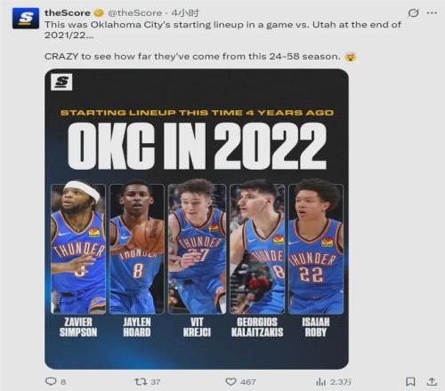 雷霆首發(fā):亞歷山大、阿杰伊-米切爾、多爾特、霍姆格倫、哈滕。過(guò)去22場(chǎng)雷霆豪取20勝2負(fù),只輸給了活塞和凱爾特人。美媒TheScore曬出雷霆2021-22賽季常規(guī)賽收官階段的首發(fā):“雷霆從24勝58負(fù)一路走來(lái),太不可思議了?!?/p>