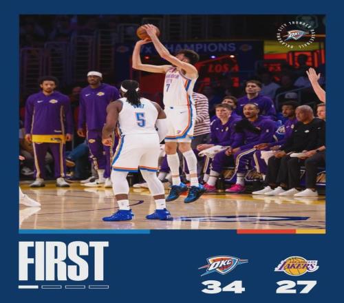 蒂米長(zhǎng)期在發(fā)展聯(lián)盟征戰(zhàn),本賽季在南灣湖人場(chǎng)均能砍下23.7分8.5籃板4.8助攻,入選了發(fā)展聯(lián)盟最佳陣容二陣。說(shuō)回今天的比賽,首節(jié)湖人送出10次助攻,比雷霆還多3次。第一節(jié)后半段,亞歷山大發(fā)力,雷霆領(lǐng)先到5分以上。