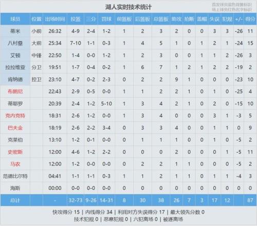 湖人繼續(xù)排名西部第四,落后掘金1個(gè)勝場(chǎng)。最后看看數(shù)據(jù),說(shuō)說(shuō)你的感受: