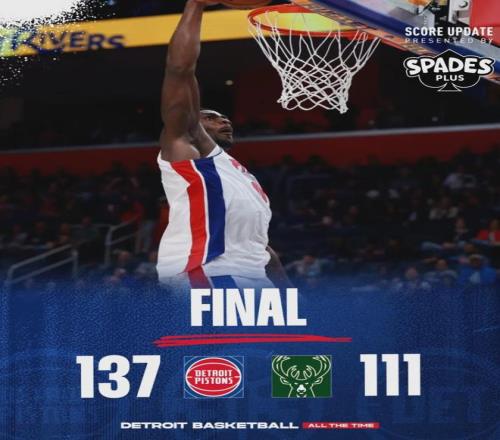 北京時間4月9日,NBA常規(guī)賽:活塞主場137-111大勝雄鹿,坎寧安正式復出。此前他因為左肺塌陷(氣胸),連續(xù)缺席11場比賽,這期間活塞8勝3負鎖定東部第一。算上今天這場,坎寧安本賽季出戰(zhàn)了62場,而活塞只剩兩場比賽要打。
