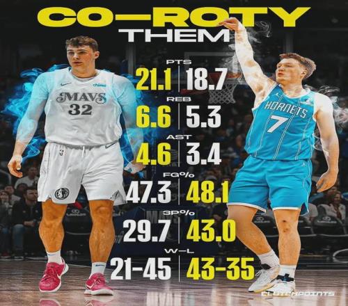 美媒Hoops感嘆道:“東契奇新秀賽季也是場均21.2分,三項命中率是43%、33%和71%。”