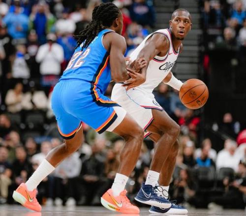 4月9日NBA常規(guī)賽——洛杉磯快船主場迎戰(zhàn)俄克拉荷馬雷霆!目前雷霆63勝16負(fù)排西部第一領(lǐng)先馬刺3個勝場,除非最后三場比賽全部輸球且馬刺全部贏球才能丟掉第一的位置,這基本很難發(fā)生!快船這邊目前41勝38負(fù)排在西部第八,落后太陽兩個勝場領(lǐng)先開拓者一個勝場,想要升至第七需要爭取3連勝收官且太陽連續(xù)輸球,對于快船來說剩余3場比賽的任務(wù)就是保8爭7!回到本場比賽此役是雙方本賽季的第三次交手,前2次對決雷霆都大比分贏球,不過前兩次交手都發(fā)生在賽季初期快船狀態(tài)最差的階段!本場比賽快船這邊加蘭不打,泰倫盧派出倫納德、科林斯、洛佩斯、瓊斯、鄧恩的先發(fā)陣容,雷霆這邊全陣容出戰(zhàn),戴格諾特沿用杰倫·威廉姆斯、霍姆格倫、哈爾滕施泰因、多特、亞歷山大的常規(guī)先發(fā)。小卡與SGA、以及雙方內(nèi)線的爭奪將是本場比賽最大看點。