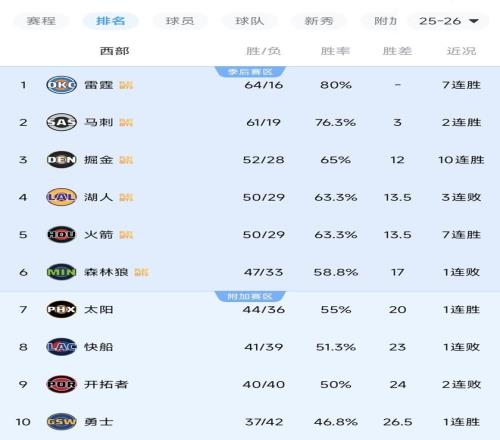 隨著雷霆7連勝,掘金10連勝!西部最新排名出爐,常規(guī)賽冠軍誕生
