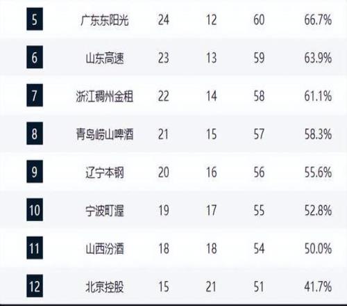 6-11名的球隊彼此僅相差1個勝場,競爭同樣白熱化。浙江稠州近期豪取6連勝,狀態(tài)神勇,不反超山東的可能。青島隊本輪被廣東逆轉,主帥劉維偉賽后怒斥外援,球隊內(nèi)部氛圍令人擔憂。遼寧本鋼則迎來兩連勝,大外援融入效果顯著,實力有所提升,下場對陣青島的比賽將是關鍵卡位戰(zhàn)。寧波町渥與山西汾酒均遭遇兩連敗,狀態(tài)起伏較大,寧波受限于硬實力,山西則面臨教練組執(zhí)教能力的質(zhì)疑。