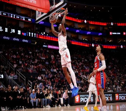 阿門今天又是活力滿滿,攻防兩端打爆76人,上半場他投籃8中4,三分1中0,罰球6中4,拿到12分1籃板2助攻1搶斷,正負值+17。