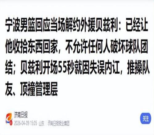 俱樂(lè)部管理層迅速作出決斷,比賽終場(chǎng)哨響后不到一小時(shí)即發(fā)布正式聲明,單方面終止與貝茲利的合作關(guān)系,解約程序啟動(dòng)之快、措辭之堅(jiān)決,在CBA近年外援管理案例中極為罕見(jiàn)。