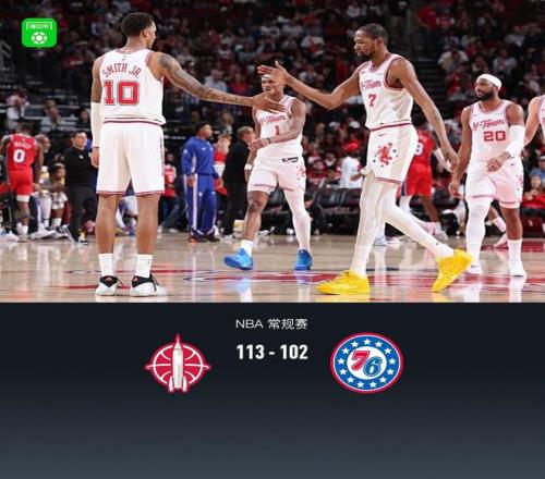第四節(jié)火箭杜蘭特拿下6分,76人格雷姆斯拿下11分,最終火箭113-102戰(zhàn)勝76人