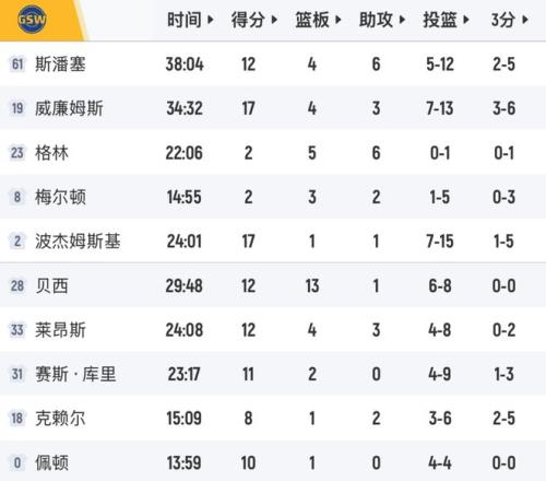 湖人本場(chǎng)隊(duì)內(nèi)MVP絕對(duì)是詹姆斯,41歲的老詹17投11中,砍下26分8板11助2搶斷1蓋帽,得分以及助攻均為全場(chǎng)最多,籃板僅次于搶到13板的貝西。艾頓21分5板,布朗尼10分。勇士這邊,首發(fā)球員梅爾頓表現(xiàn)辣眼睛,5中1,三分3中0,2分3板2助2失誤,堪稱隊(duì)內(nèi)最差。