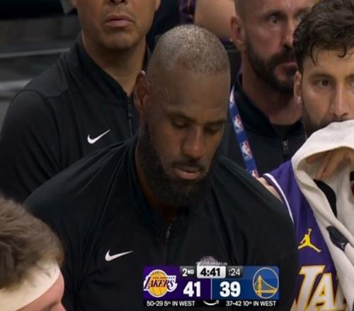 而面對(duì)勇士前,湖人50勝29負(fù),排在西部第5位,落后第3名掘金1.5個(gè)勝場(chǎng),比身前的火箭少0.5勝場(chǎng)。湖人沖到西部第3的希望不大,若來(lái)到第4位將在季后賽首輪多1個(gè)主場(chǎng)優(yōu)勢(shì)。不過(guò)在賽前湖人已是3連敗,球隊(duì)不僅士氣低落,而且陣容殘缺不齊。賽前詹姆斯跟庫(kù)里擁抱致意,而且?guī)炖锎┥狭苏材匪菇?jīng)典戰(zhàn)靴,與老友寒暄。