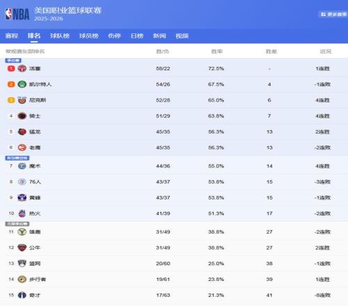 NBA最新排名!差1場(chǎng),3隊(duì)搶西部第3騎士沖第4,季后賽對(duì)手3選1