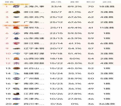 隨著上海18連勝,廣東大勝33分,CBA最新排名出爐!廣廈排第2