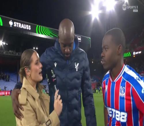 根本不放手!水晶宮前鋒馬特塔賽后手摟女主持人引熱議